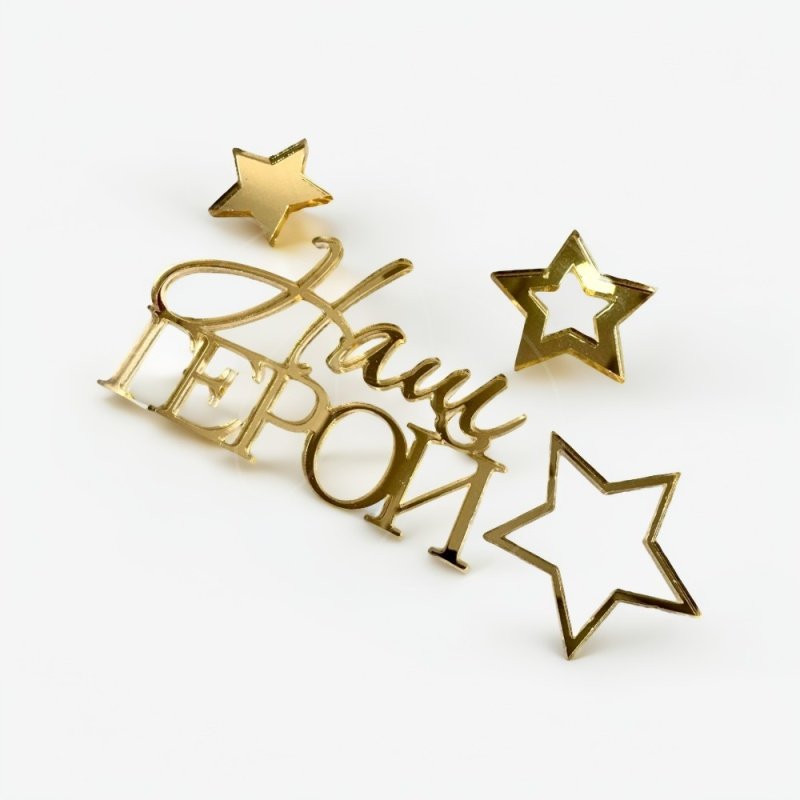 Доставка Топпер декоративный акриловый "Наш герой" Золото 9х5,5 см из магазина в вашем городе: