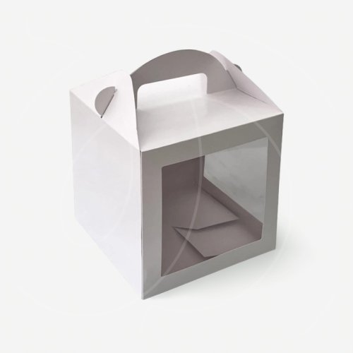 Доставка Коробка с ручкой и окном белая 18х18х18 см из магазина в вашем городе: